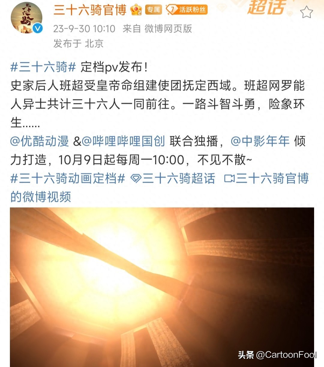 9月30日,《三十六骑》官博发布了该作定档的消息,