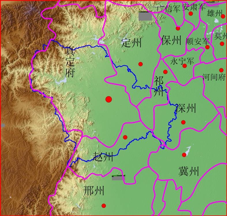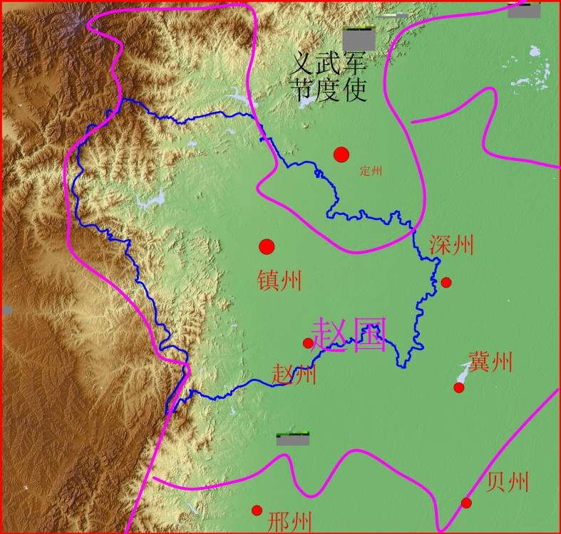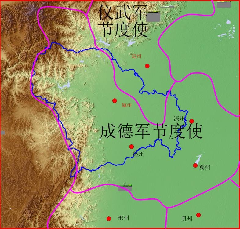 唐朝后期实行节度使制度。镇州、赵州、深州、冀州组成河朔三镇之一的成德节度使。治镇州。