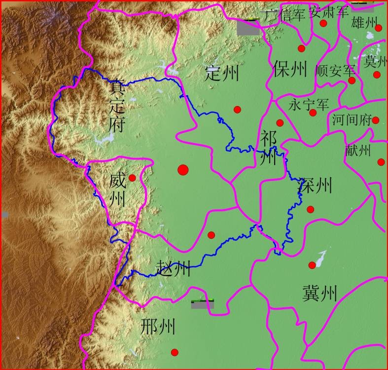 北宋时期,改镇州为真定府,治真定。其他地区没啥变化。