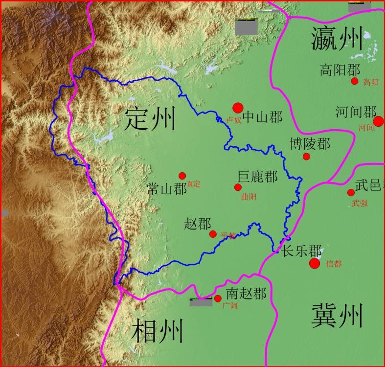 三国时期,常山郡南部划归赵国,常山郡治由元氏迁到真定。