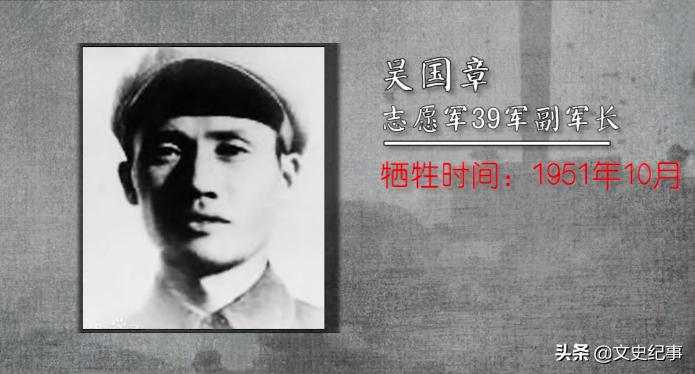 第7位:吴国璋,志愿军第39军副军长,安徽省金寨人,1951年10月的6号,他乘坐吉普车从平壤总部开会返回军部,途径成川郡附近时,遭遇美军战机轰炸,其左肋负伤,后壮烈牺牲,年仅32岁。