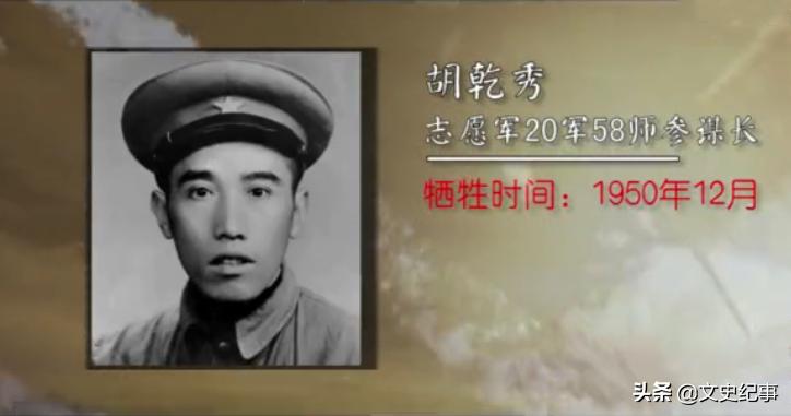 第一位:胡乾秀,志愿军第20军58师参谋长,湖北省阳新县木港镇枣园村人,1950年12月20号。