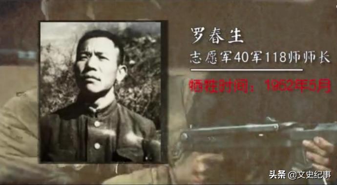 第五位:罗春生,志愿军第40军118师师长,江西省吉安县人,1952年5月的15号清晨,他在涟川前线新寺洞遭敌人空袭而壮烈牺牲,年仅36岁。