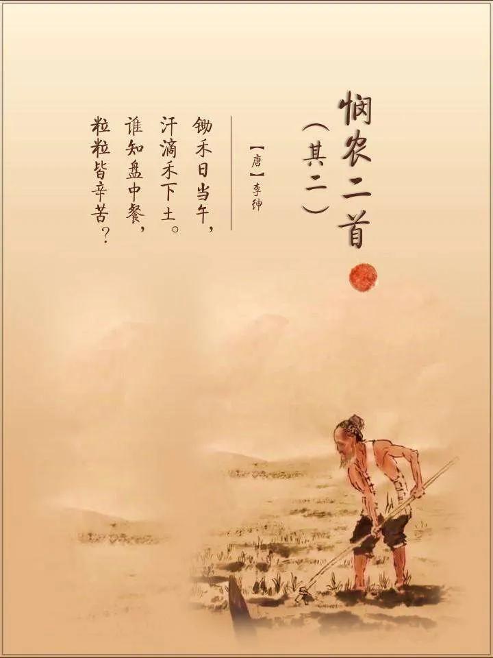 在慢长的农耕时代,民以食为天,连皇帝都要亲耕以示范天下,李绅身为传统的知识分子,自然是深懂这一点。