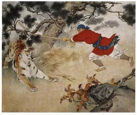 小说中最为著名的段落之一,武松打虎,源于施耐庵在村后的后阳岗散步,看见有只黄色的狗在树下睡觉,一个叫武阿二的村民见有狗在自家的树下睡觉,便将其打跑。