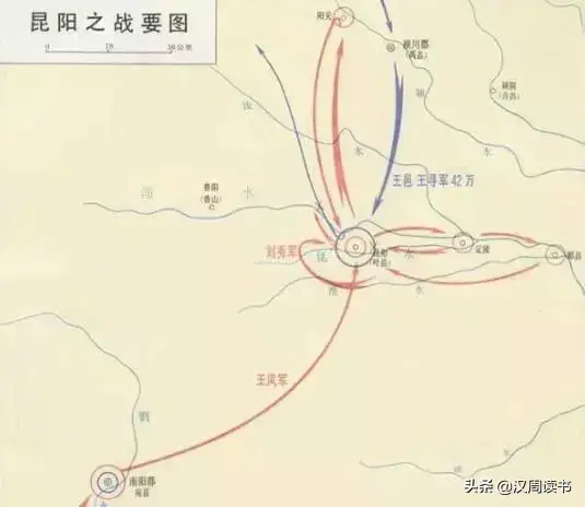 在颍川又会合了严尤、陈茂的部队,随即向昆阳方向进击,心想既然你开挂我就好好陪你玩玩,这上千战将和几十万大军还有犀牛、虎、豹等猛兽,你刘秀不过两万军队,我难不成灭不掉你?