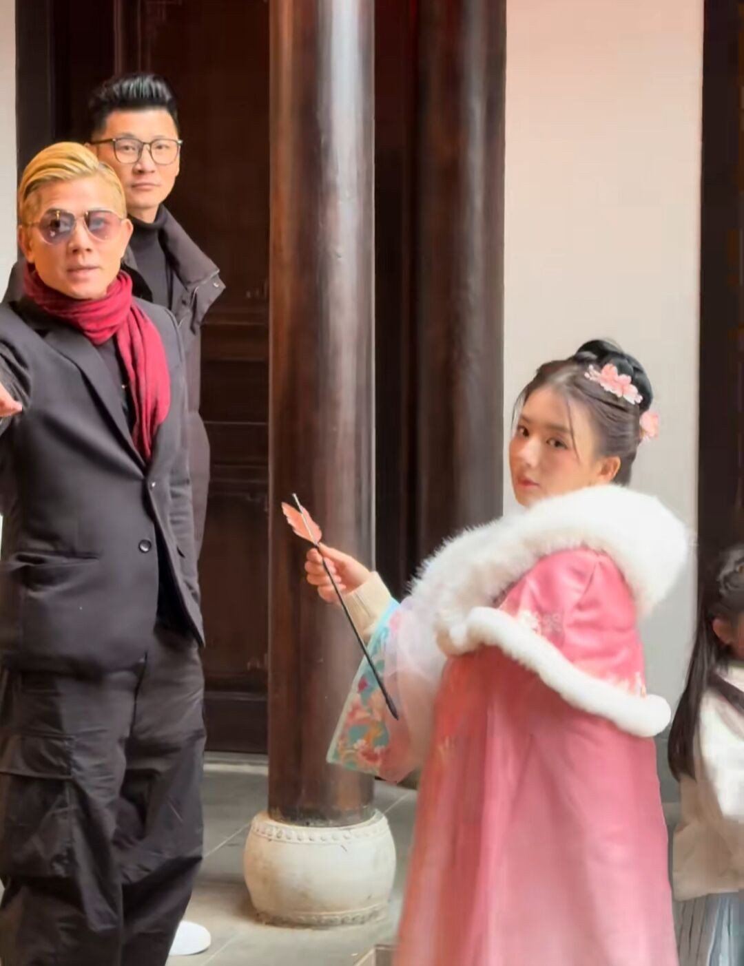 头一天,大家都围着郭富城这位巨星转,可很快郭富城的风头立马被方媛和两个女儿给抢过去了。当方媛脱掉了朴素的羽绒服换上了古装贵妇装后,她的气质立马体现出来了。