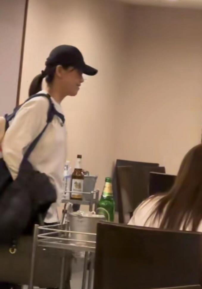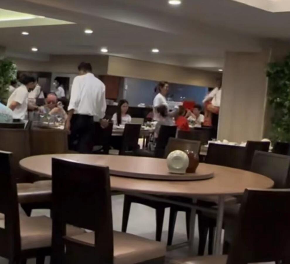 闫学晶跟在老公马东明的身后,几个人前往他们所定好的餐厅座位用餐。