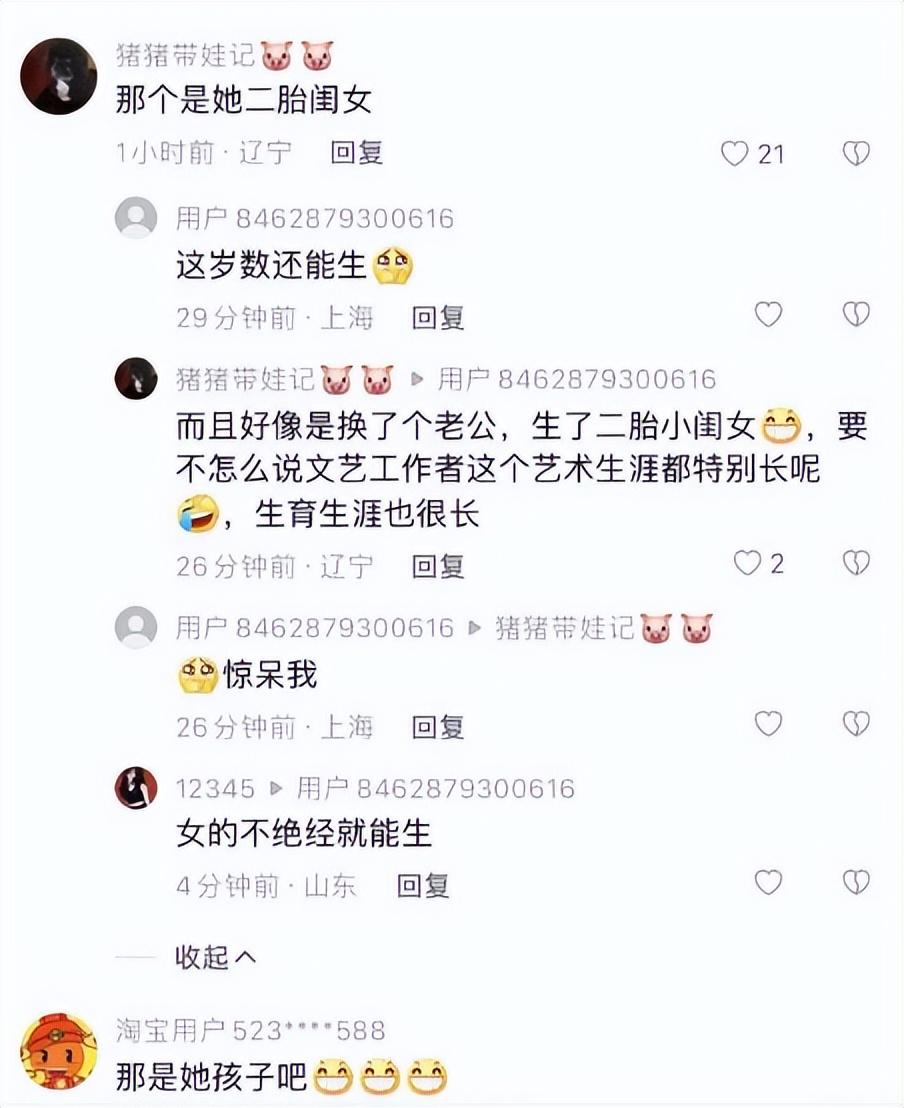 看到闫学晶一家现身泰国餐厅,网友们忍不住在评论区写道:“那个是她二胎闺女”、“后面还跟了一个佣人”、“而且好像是换了个老公,生了二胎小闺女,要不怎么说文艺工作者这个艺术生涯特别长呢,生育生涯也很长”。