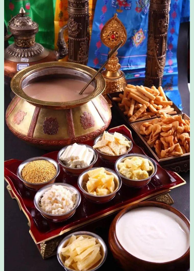 以奶制品、肉和面食为主。蒙古族除手抓肉外,还喜炖羊肉、火锅。面拌以炒面为主。食用时加酥油或牛羊油,以茶水搅拌。各类面食也是常用食物。