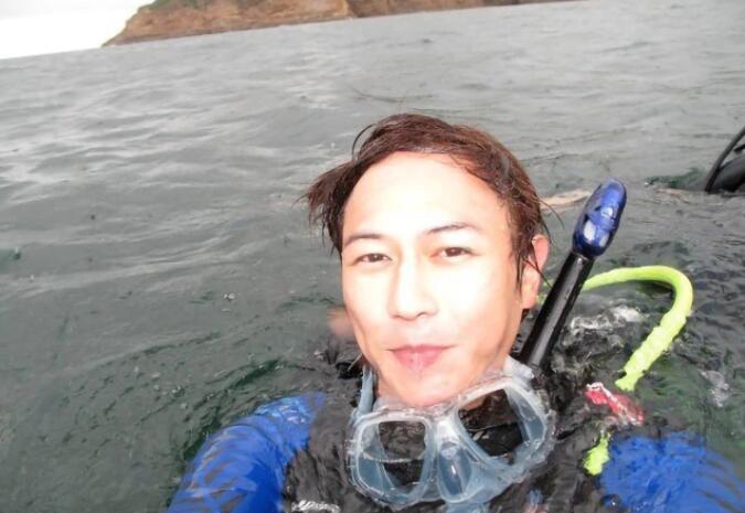 在演艺事业的高压下,潜水与考证成了他主要的减压方式。