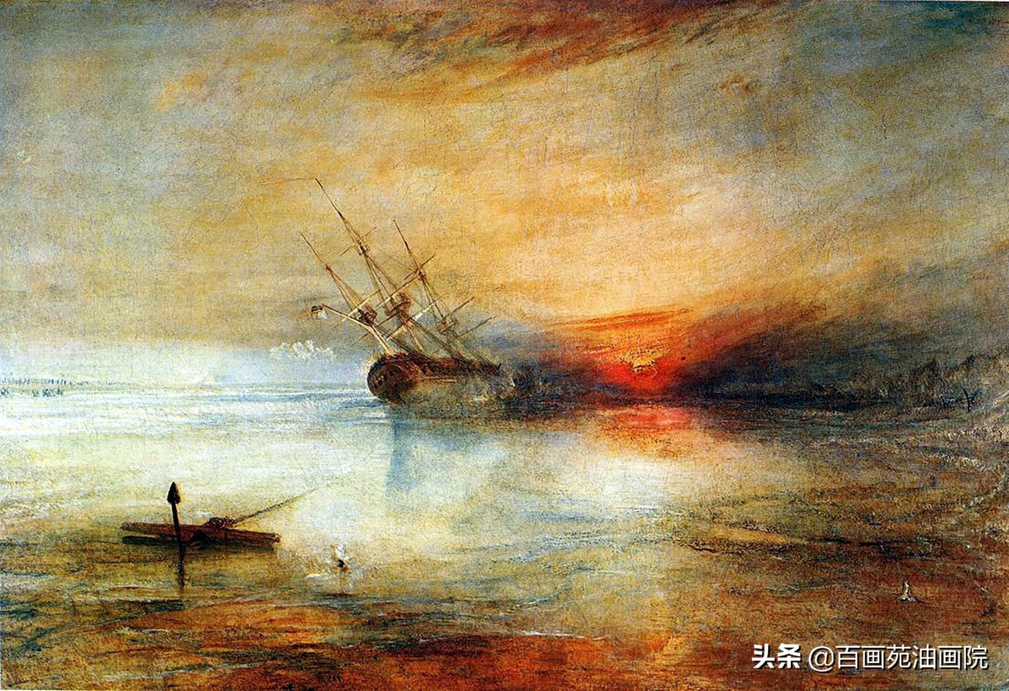 透纳的许多作品,都是竭力抓住瞬息即逝的光影效果,和印象主义对光和色的探讨理念是不谋而合,可说透纳是法国印象派的一位先驱。
