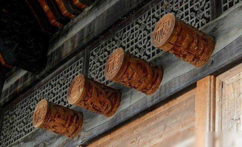 除了门墩,古代建筑中的“户对”也是一种重要的装饰物。这些凸起的柱形木雕或砖雕放置在门楣上,一般雕刻着瑞兽珍禽,与门当一样,成双成对出现。