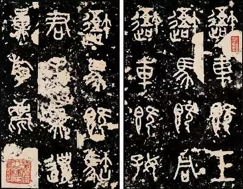 6、清篆:清代碑学之风大盛,取法秦汉,对篆书的书写进行了大胆的改革,一改唐代以后篆书因为以楷入篆而衰微的局势和风气,邓石如、吴让之、杨沂孙、赵之谦等人皆是篆书高手。