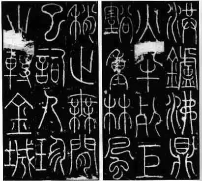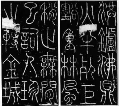 “籀文”乃据古文而作,是在古文基础上整理出来的,故其与古文或同或异。今其文散见于《说文解字》和后人收集的各种钟鼎彝器之中。其中以周宣王时所作石鼓文最为著名。