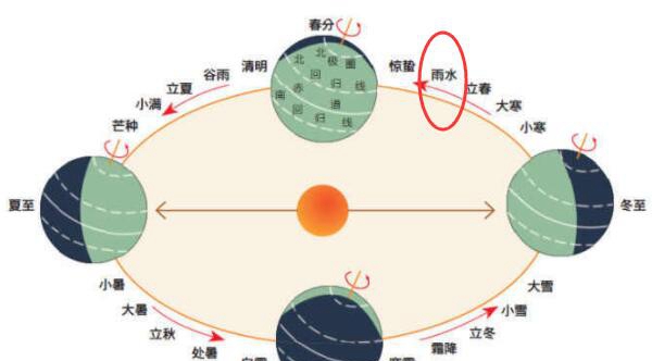 昔人将地球公转轨讲称为“黄讲”,并把它等比率分红24份,之间相隔15°,便产生了24个骨气。地球在黄讲上每运转15°,便对于应一个骨气,而当太阳达到黄经330°时为雨水骨气。