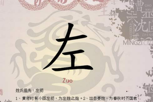 左姓与宗姓发源和根源一般,个中也有局部源自官职名,例如在年龄时代,许多诸侯都城树立了不少以“左”为名字的官职,例如左史官、左侍、左卫、左军等,而这些仕宦的后裔也便以官为姓,产生了不少左启头的复姓,例如左侍氏、左史氏、左军氏以及左宫氏等,而之后在实行省文的历程中,这些复姓也都简化为了左姓。