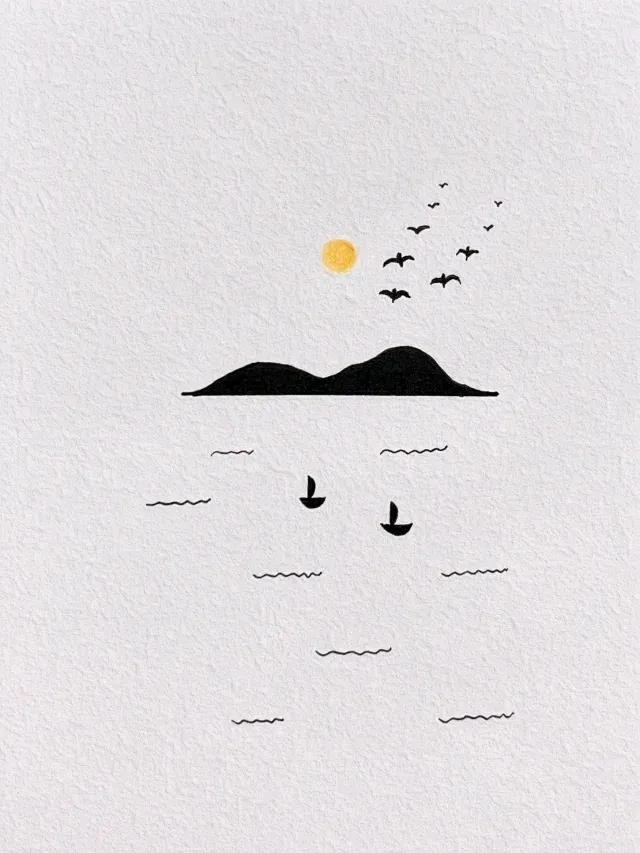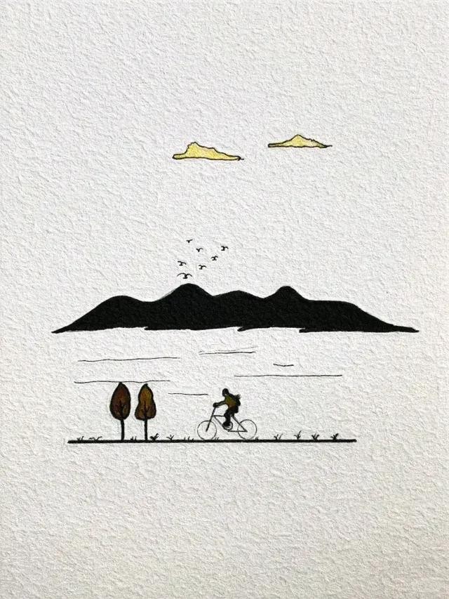 (179)寥寥几笔,勾勒出意境优美的山水简笔画,喜欢来试试吧