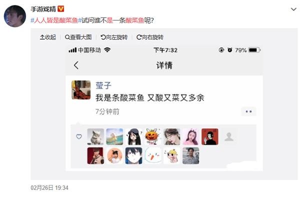 说到酸菜鱼应该大家想到的都是桌上面的菜肴,酸菜鱼也是鱼的一种做法,在很多的家庭里面都非常的喜欢吃酸菜鱼。在微博上面发布的截图内容是我是条酸菜鱼,又酸又菜又多余,是将酸菜鱼分开了进行了说明,人人皆是酸菜鱼,其实就是说每个人都是又酸又菜又多余。