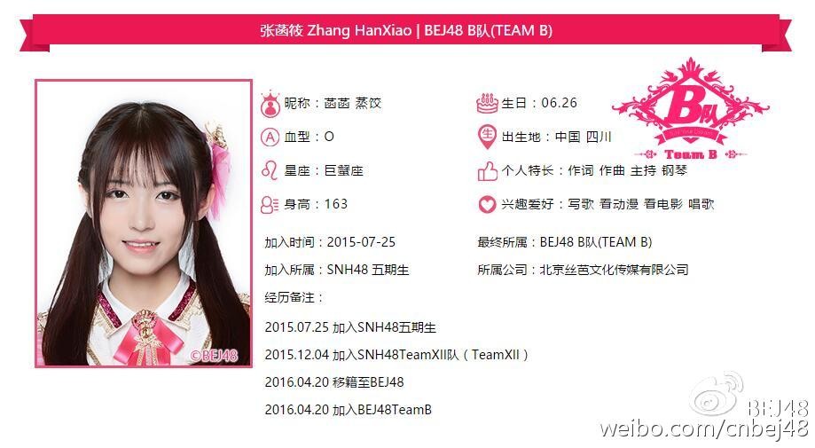 BEJ48 TOP7中报第四名——张菡筱 | 个人档案