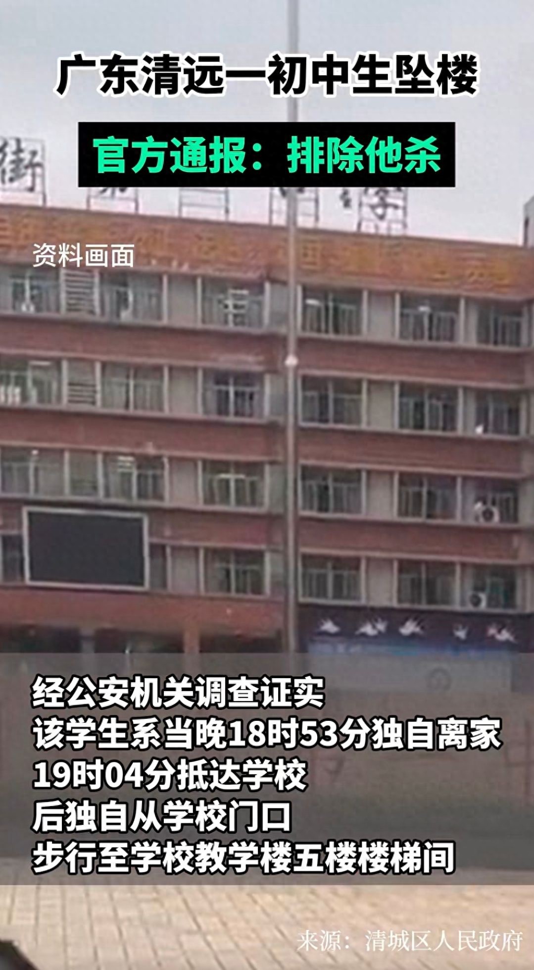 据悉,2024年2月25日,广东清远一初中发生了一起学生坠楼事件。事情发生后的第一时间,学校便立刻拨打了120急救与110报警。不幸的是,医护人员赶到后检查发现,该学生已经失去了年轻的生命。