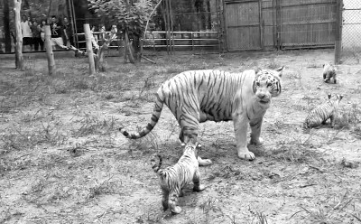 法制晚报讯(记者 李东)昨天,两个月前曾被投石惊吓的白虎“亮亮”首次携三只虎宝宝亮相北京野生动物园。“亮亮”进入公众的视野是因为今年6月一名游客曾在游览区内向虎园投石,希望让正在休憩的老虎“动起来”,现场巡视人员及时阻止了游客的行为。事发后,工作人员及时检查,发现白虎没有受到惊吓,身体状况和精神状态均良好。目前园区已增加“禁止投喂”等提示牌,同时增派巡视员加大巡视频率。