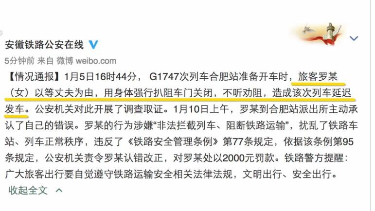 公安责令拦高铁女教师认错 罚款二千元 2025-12-20 21:24 点击: 来源:皮坤网 摘要:公安责令拦高铁女教师认错 罚款二千元 1月5日,安徽合肥,女教师罗某以等老公为名,阻挡高铁车门关闭。1月10日上午,罗某主动来到派出所。公安机关责令她认错改正,处2000元罚款 公安责令拦高铁女教师认错 罚款二千元1月5日,安徽合肥,女教师罗某以等老公为名,阻挡高铁车门关闭。1月10日上午,罗某主动来到派出所。公安机关责令她认错改正,处2000元罚款。 相关标签: 上一篇:对恐龙的了解还不如三岁小孩?这些恐龙你都知道叫啥吗? 下一篇:漂亮英文符号大全