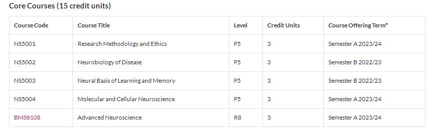Master of Science in Neuroscience 神经科学理学硕士