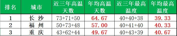 如上文所说,新八大火炉里,排名前三的依次是长沙、福州、重庆。