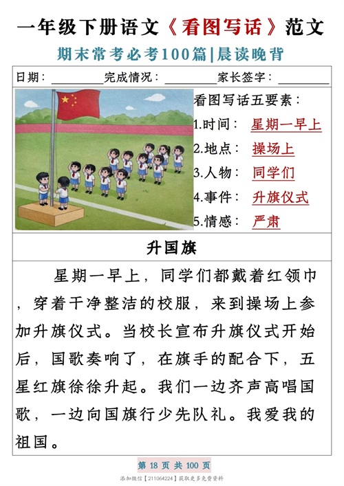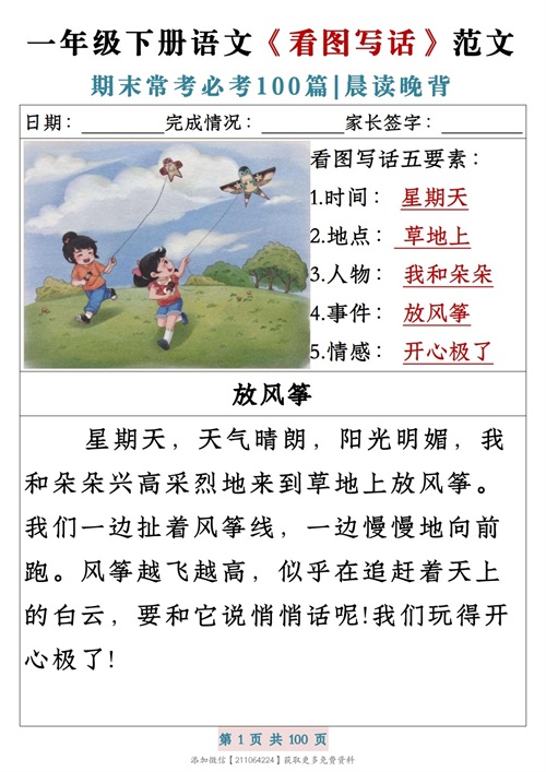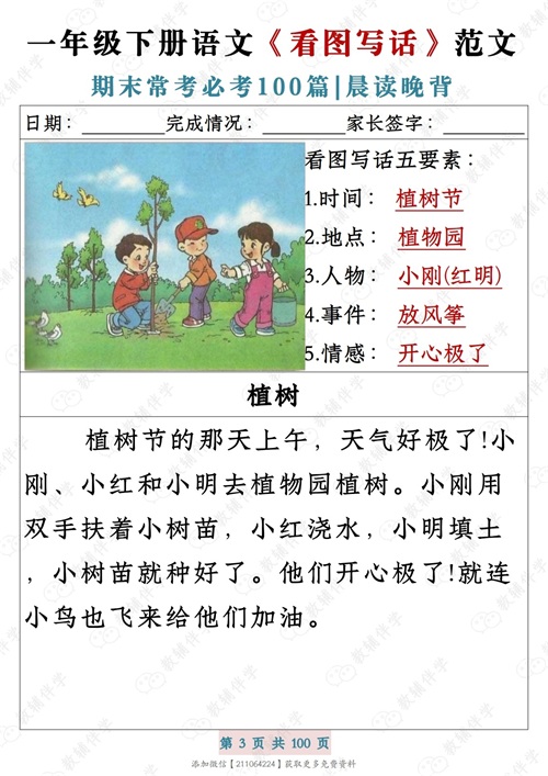 一年级下册语文《看图写话》范文期末常考必考100篇