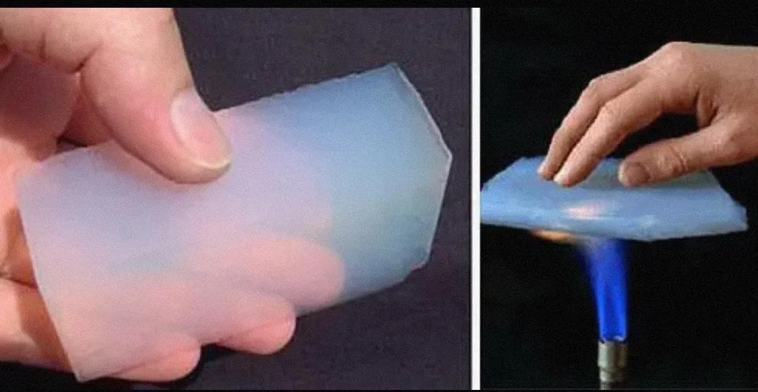 不仅如此,气凝胶还有一个神奇的特性,那就是隔热就算只有一块两厘米的气凝胶,在60多度的炙烤下,你把手放上去,压根感觉不到烫,就是因为这些出色的特性,气凝胶背科学家称为“改变世界的神奇材料”