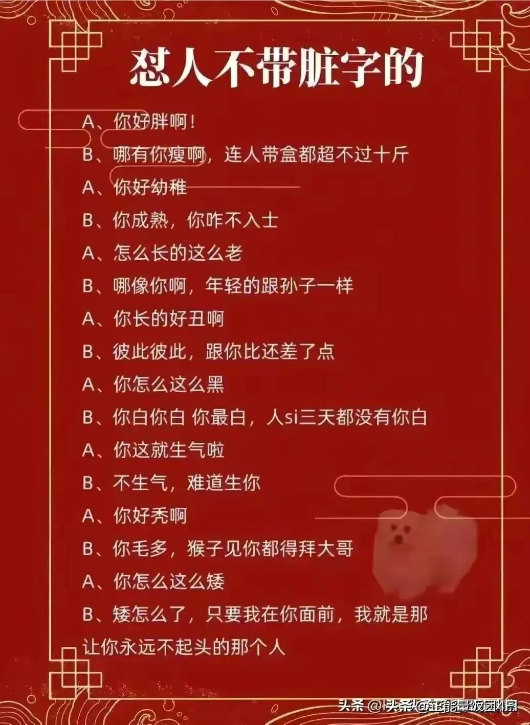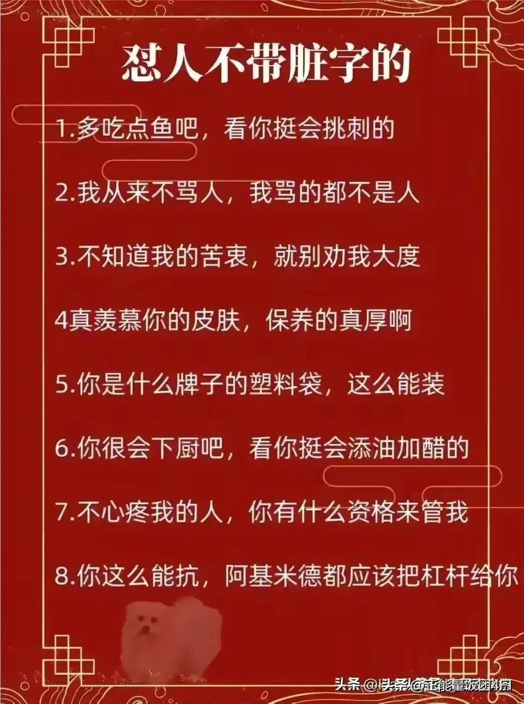 怼人不带脏字的高级话。必须给收藏起来! 2025-12-31 06:56 点击: 来源:皮坤网 摘要:怼人不带脏字的高级话。必须给收藏起来! 怼人不带脏字的高级话。必须给收藏起来! 相关标签: 上一篇:安徽文理科状元出炉!不但是学霸,颜值也不错!(附图) 下一篇:每天学一幅简笔画--蚂蚁简笔画步骤画法图片
