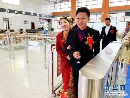 春运首日最浪漫的事:小伙乘坐动车迎娶新娘