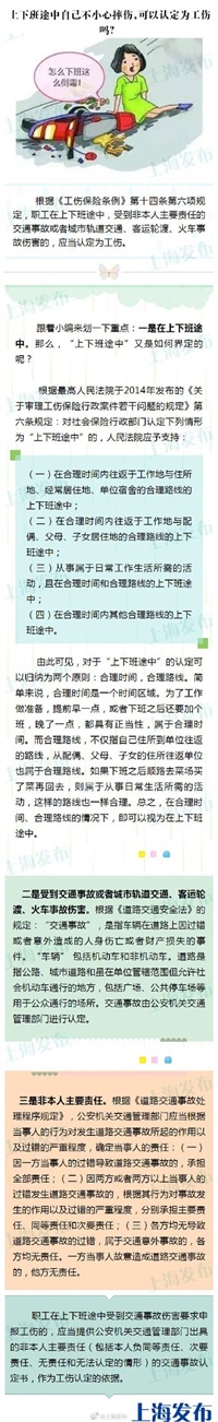 【上下班途中自己不小心摔伤,可以认定为工伤吗?】便民提示上下班途中发生意外,是不是都可以被认定为工伤呢?@上海12333 说,根据《工伤保险条例》第十四条第六项规定,职工在上下班途中,受到非本人主要责任的交通事故或者城市轨道交通、客运轮渡、火车事故伤害的,应当认定为工伤。但有三个重点需注意:一是在上下班途中;二是受到交通事故或者城市轨道交通、客运轮渡、火车事故伤害;三是非本人主要责任。