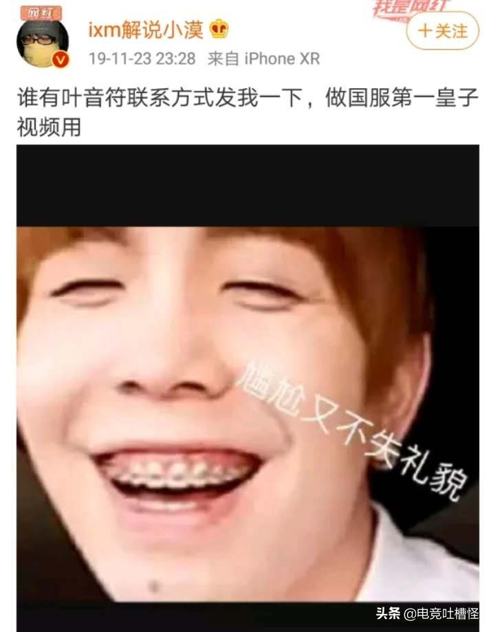 最近小漠在微博上寻求一个叫叶音符的玩家的联系方式,看样子是要重新开始做国服第一系列,而这次国服第一系列的英雄是皇子。