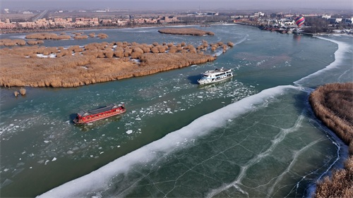 2025年1月1日,游客乘坐游船体验(无人机照片)。新华社记者 王鹏 摄