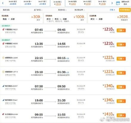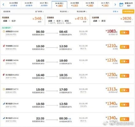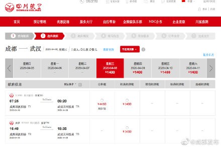 4月8日起成都飞武汉复航 每天单向直飞8-9个航班