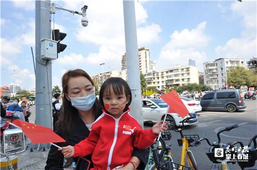 这是昆明开展“同升国旗同唱国歌 ”活动的一个现场。当天,盘龙区、晋宁区、安宁市等地均举行了同升国旗同唱国歌活动,共同庆祝新中国成立72周年。
