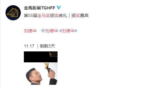 金马奖倒计时三天 刘德华压轴担任颁奖嘉宾