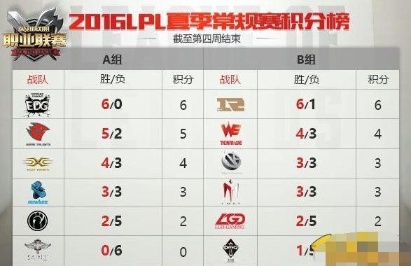 LPL夏季赛第四周积分排行榜 EDG全胜力压RNG