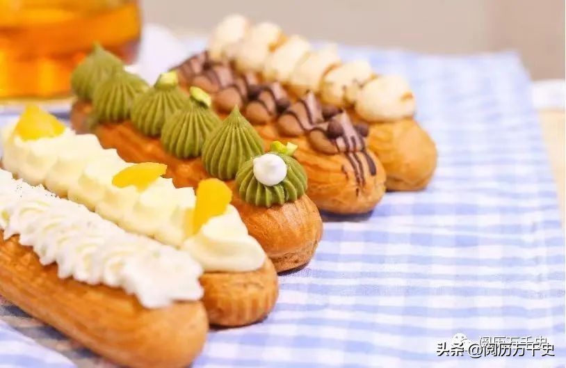 法国著名的甜点之一就是闪电泡芙。这是一种经典而诱人的法式甜点,以其精致的外观和丰富的口味而闻名于世。泡芙外壳由奶油酥皮制成,金黄酥脆,泡芙内部通常被填充上各种美味的馅料,最常见的有香草或巧克力、奶油、水果、咖啡、焦糖等。这种甜点的口感轻盈而丝滑,每一口都能带来绝妙的味觉享受。