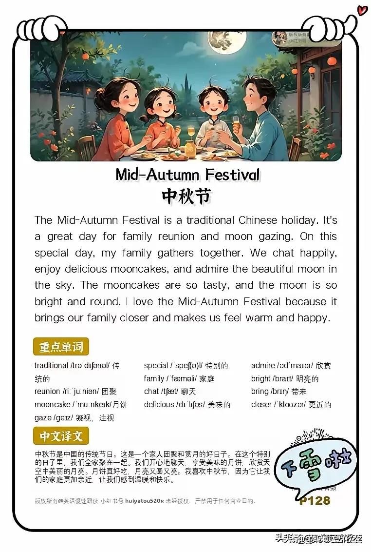 用英语讲述中国传统文化❗️小学英语满分范文 2026-01-11 21:15 点击: 来源:皮坤网 摘要:用英语讲述中国传统文化❗️小学英语满分范文 用英语讲述中国传统文化❗️小学英语满分范文 相关标签: 上一篇:爷青回!“大古”本人现身迪迦奥特曼活动现场! 下一篇:1-11月河北对共建“一带一路”国家进出口增长9.2%