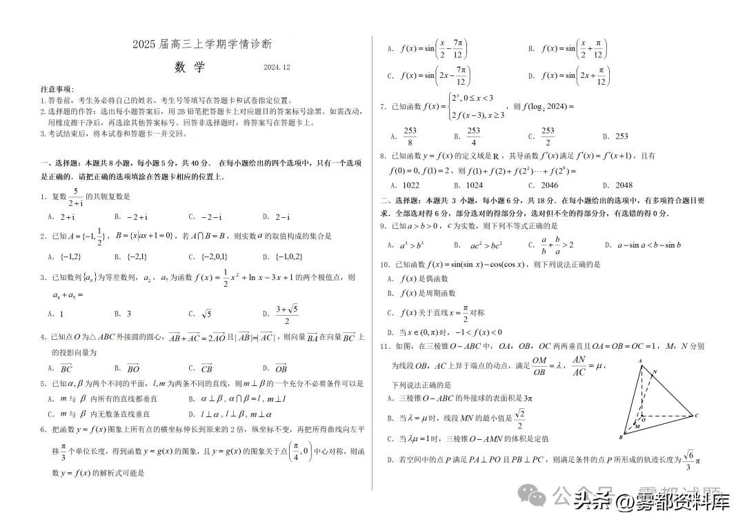 山东省百校联盟高三12月学期诊断联考试 2026-01-12 03:41 点击: 来源:皮坤网 摘要:山东省百校联盟高三12月学期诊断联考试 今日分享:全科丨山东省百校联盟高三12月学期诊断联考试卷答案 【部分科目展示】 数学 山东省百校联盟高三12月学期诊断联考试今日分享:全科丨山东省百校联盟高三12月学期诊断联考试卷答案【部分科目展示】数学 相关标签: 上一篇:临沂多地迎来2024年首场降雪 下一篇:山东中医药大学近三年录取数据(2020-2022,山东)
