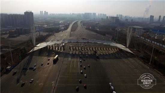 航拍视角下的长春东收费站,车流井然有序连续不断。
