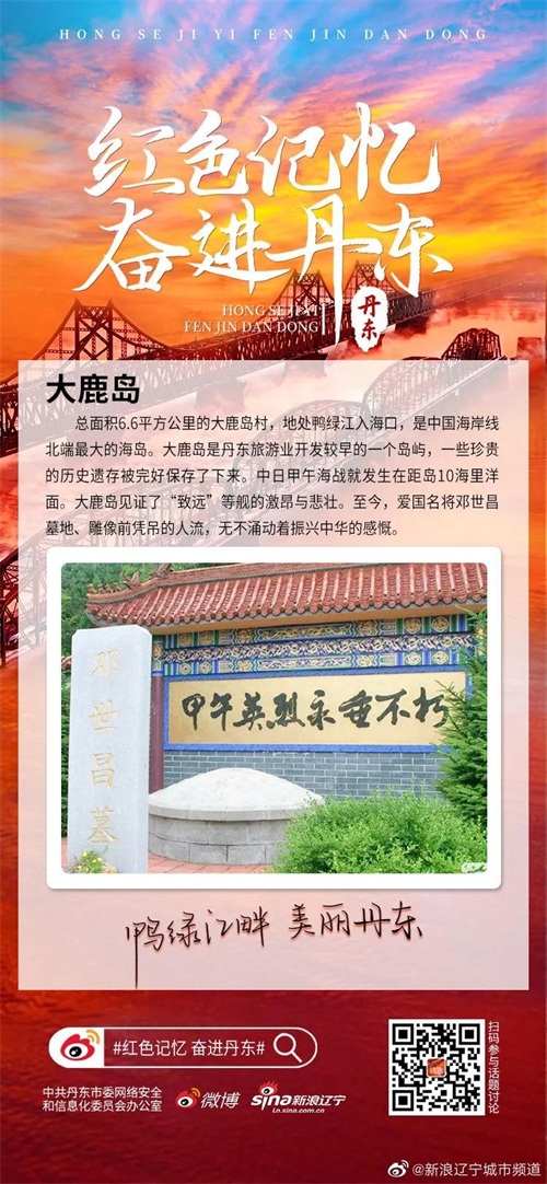 【“中国北方的夏威夷”·大鹿岛】总面积6.6平方公里的大鹿岛村,地处鸭绿江入海口,是中国海岸线北端最大的海岛。大鹿岛是丹东旅游业开发较早的一个岛屿,一些珍贵的历史遗存被完好保存了下来。中日甲午海战就发生在距岛10海里洋面。大鹿岛见证了“致远”等舰的激昂与悲壮。至今,爱国名将邓世昌墓地、雕像前凭吊的人流,无不涌动着振兴中华的感慨。#美好辽宁欢迎您#