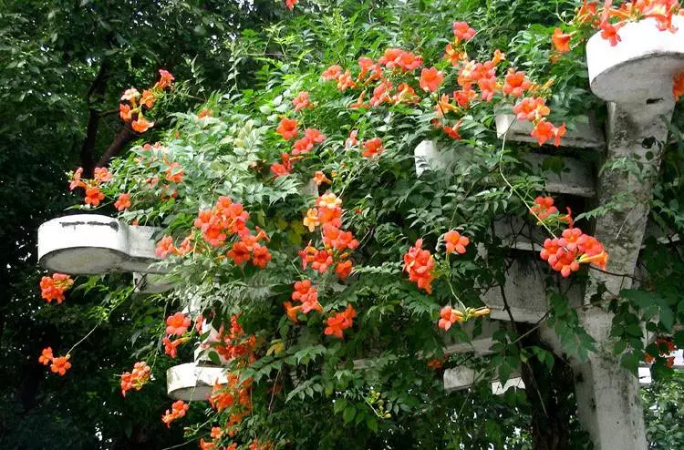 凌霄花是大家最常见的爬藤花了,小喇叭一样的橙色花朵,一开一大团,很震撼,想要一面凌霄花墙,剪取一年生的枝条,进行扦插。