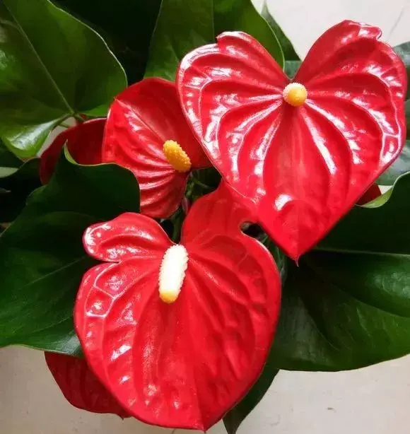 红掌几乎一年四季开花,它是一片叶子出一个花苞,只要平时水肥跟上,花朵就会一朵接一朵开,败的花朵要及时摘掉,盆轻了就浇透水。