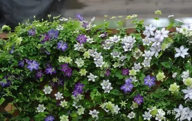 铁线莲可是爬藤界颜值数一数二的,和月季是绝配,多给它晒太阳,尤其是春天刚发芽的时候,晒晒太阳蹭蹭冒芽,再半月埋点复合肥或者缓释肥,花墙指日可待了!