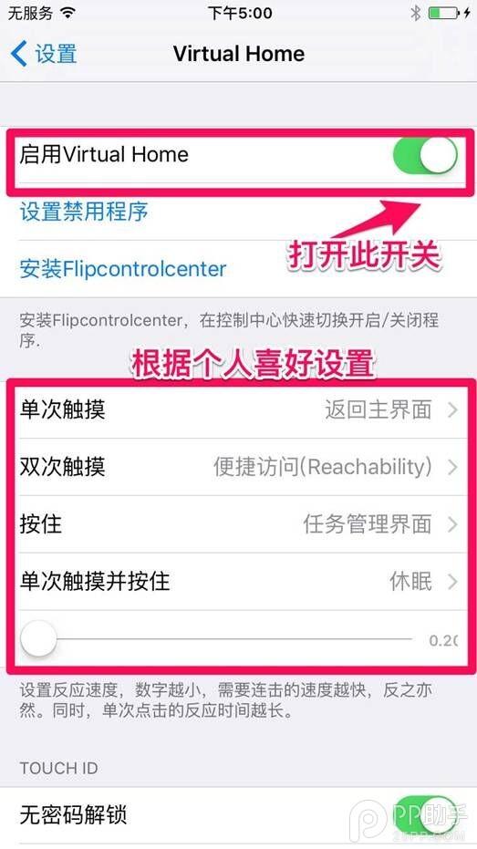这个插件只要轻碰一下Home键能够模拟Home键返回的效果,有点像魅族的mback功能,轻点返回,不过这个插件是直接回到界面,还可以设置轻点两下调出后台。
