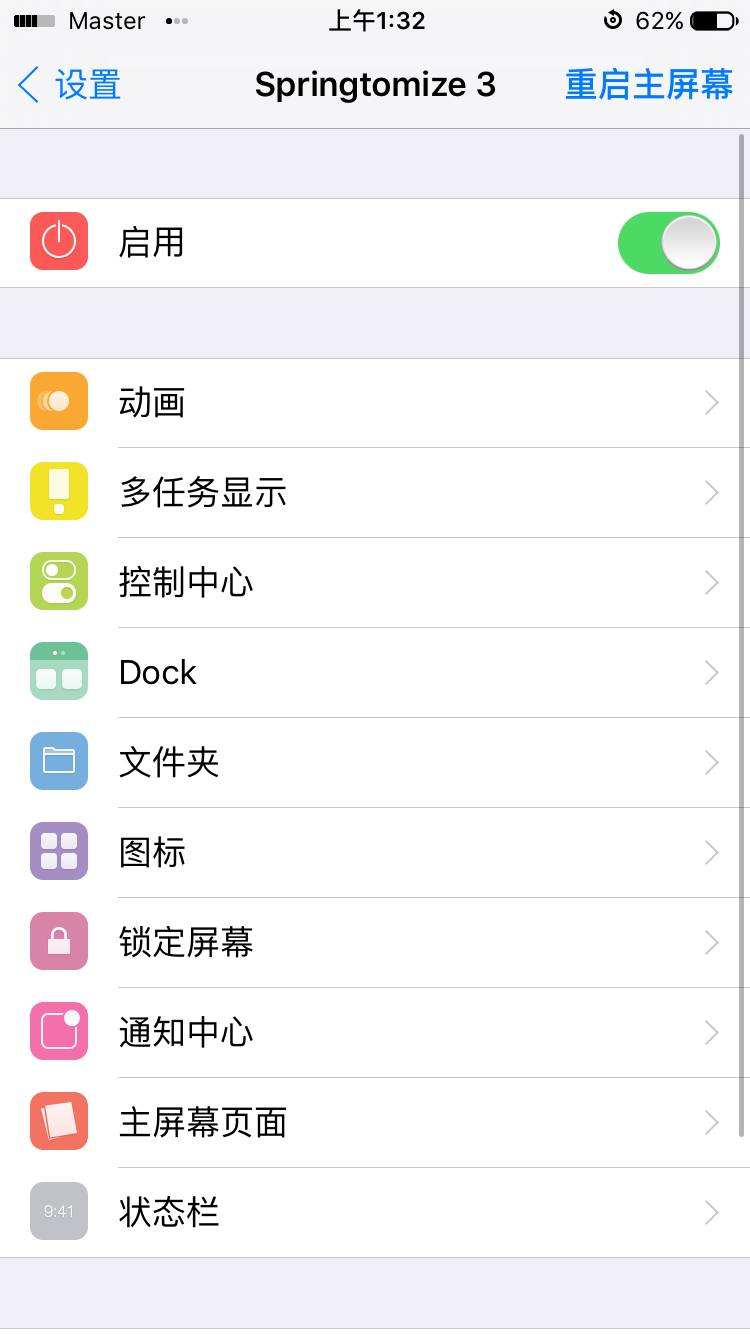 Springtomize 3设置界面